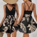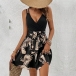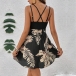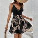 Fashion Floral Printed V-neck Criss-cross Backless Mini Dress