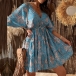 Fashion Floral Printed V-neck Elbow Sleeve Mini Dress