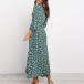 Fashion Floral Printed V-neck High-rise Elbow Sleeve Midi Dress
