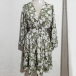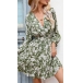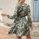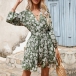 Fashion Floral Printed V-neck Long Sleeve Cinch Waist Mini Dress