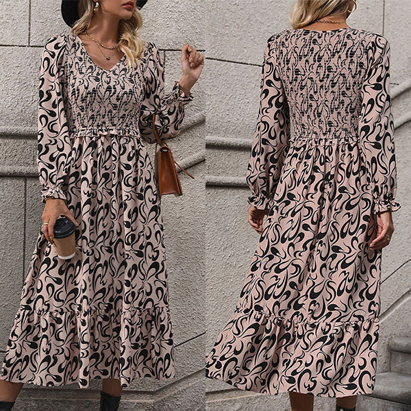 This dress features a floral print, V-neckline, and long sleeves, creating a chic and feminine look. The floral print adds a touch of whimsy and romance to the dress, making it perfect for a variety of occasions. Wanna have a try?
