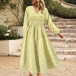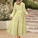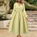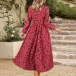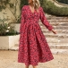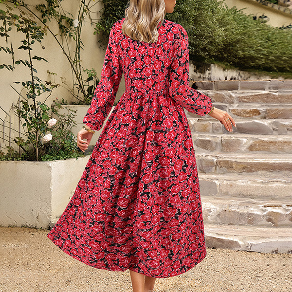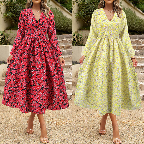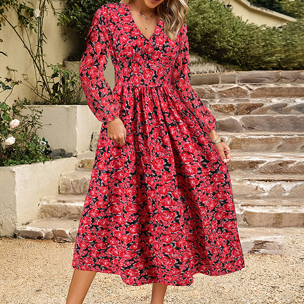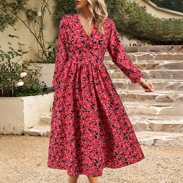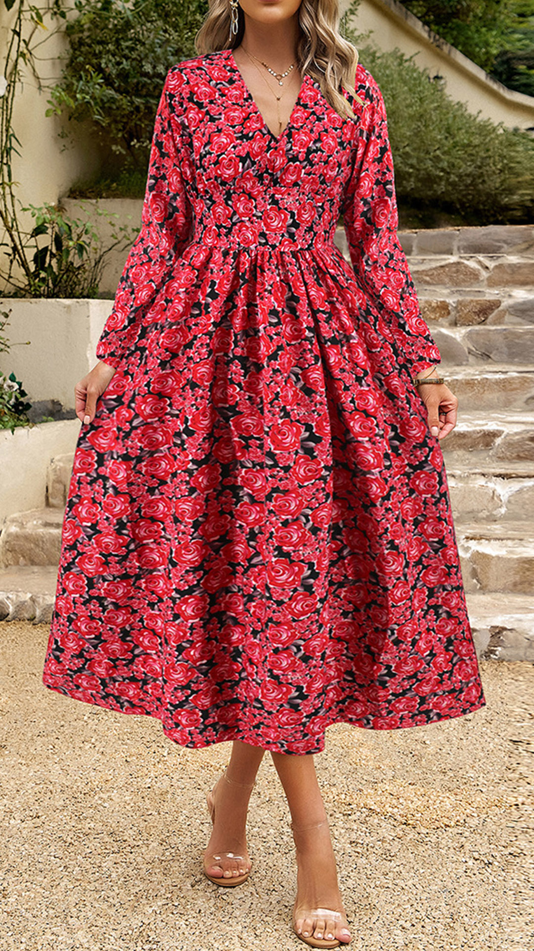 Fashion Floral Printed V-neck Long Sleeve High-rise Maxi Dress