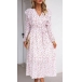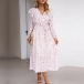 Fashion Floral Printed V-neck Long Sleeve Self-tie Midi Dress