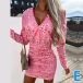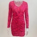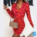 Fashion Floral Printed V-neck Puff Long Sleeve Ruched Bodycon Dress