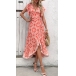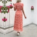 Fashion Floral Printed V-neck Ruffle Short Sleeve Slit Midi Dress