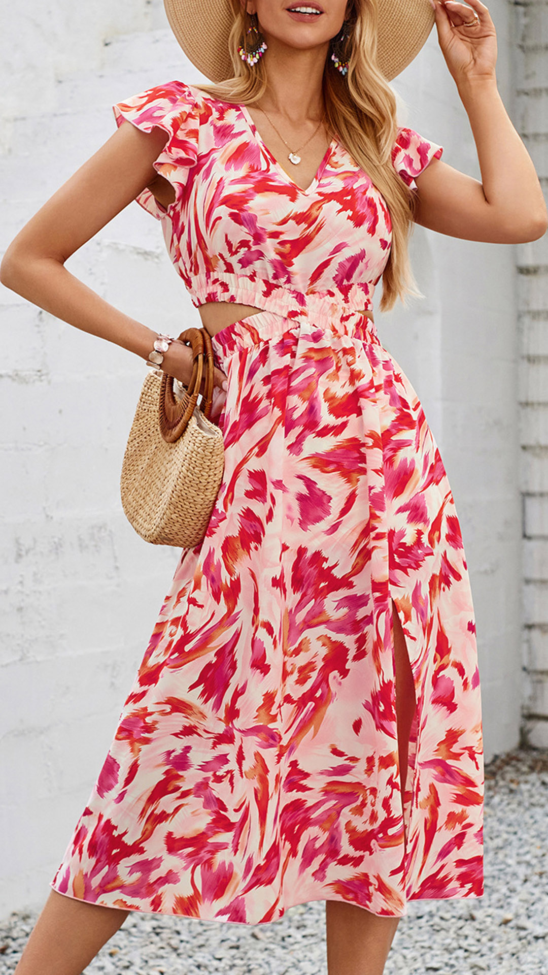 Look at this dress.The floral print adds a touch of elegance and charm, making it perfect for a variety of occasions. I like the side cutout design, and you?