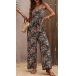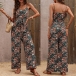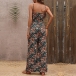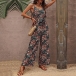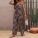 Fashion Floral Printed V-neck Self-tie Backless Straight-cut Jumpsuit
