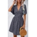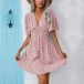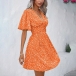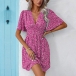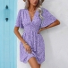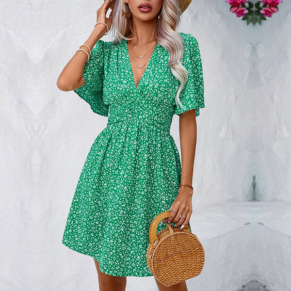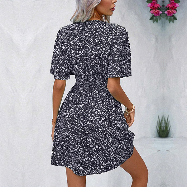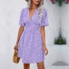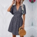 Fashion Floral Printed V-neck Short Sleeve High-rise Mini Dress