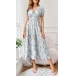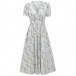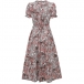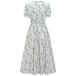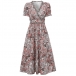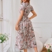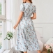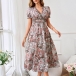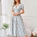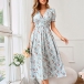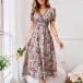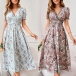 Fashion Floral Printed V-neck Short Sleeve High Waist Midi Dress