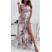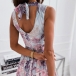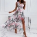 Fashion Floral Printed V-neck Sleeveless Backless Slit Maxi Dress
