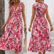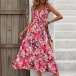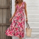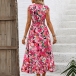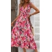 Fashion Floral Printed V-neck Sleeveless Drawstring Waist Midi Dress