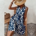 Fashion Floral Printed V-neck Sleeveless Mini Dress