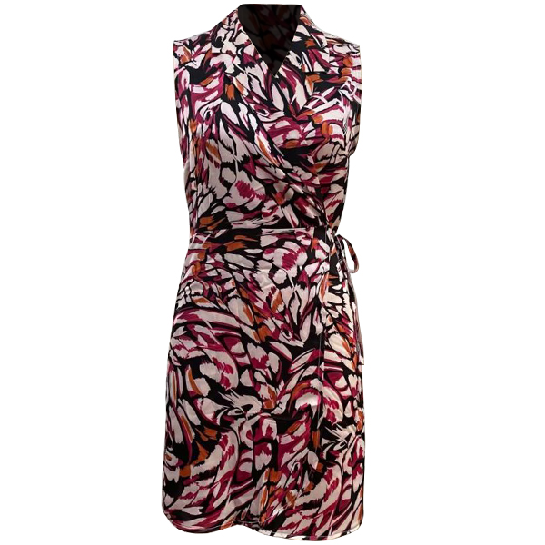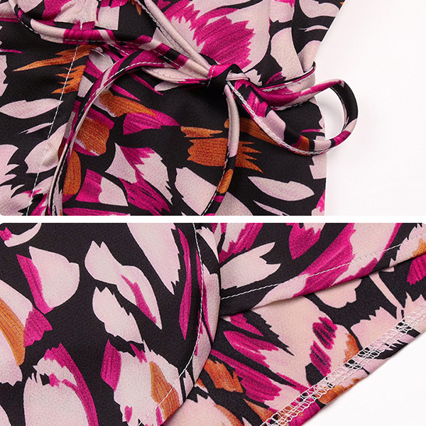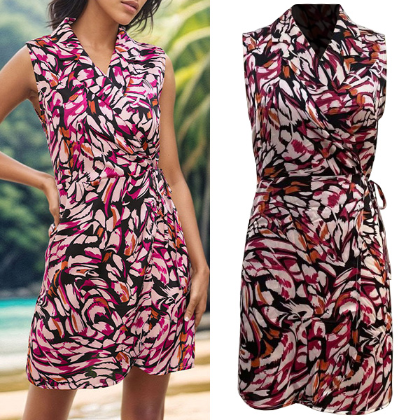 Fashion Floral Printed V-neck Sleeveless Self-tie Wrap Dress