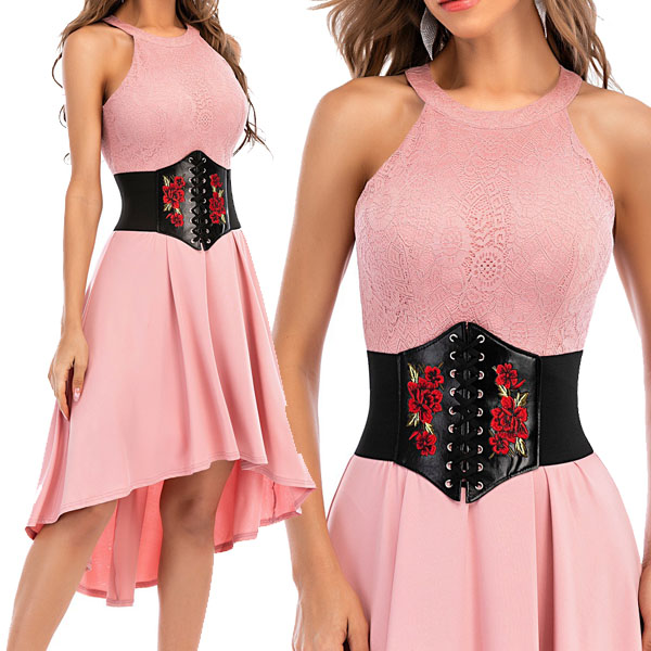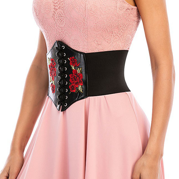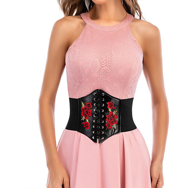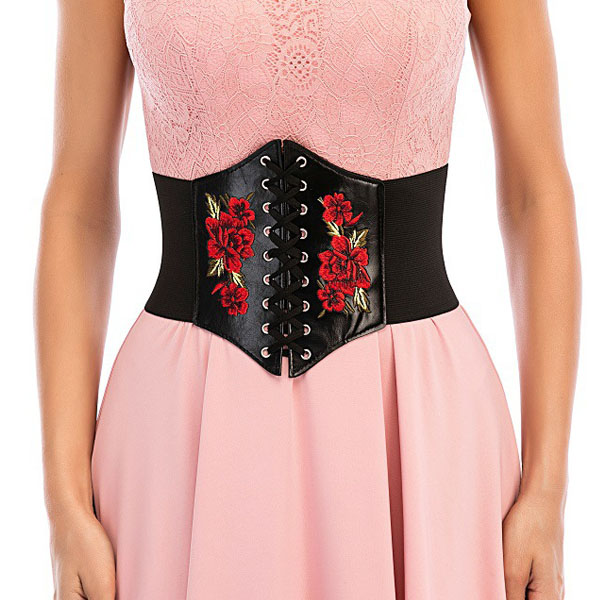 Wanna make your simple and dull dress up look more charming and stylish? Then you can consider adding this PU leather girdle. The flower embroidery details and lace-up design make this piece look so attractive and distinctive. It is also can be a good helper to showcase your slender waistline.