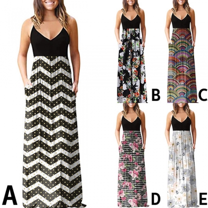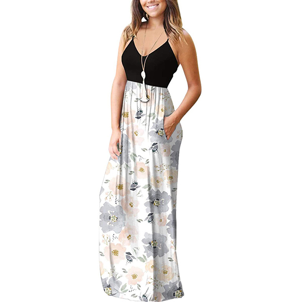 Fashion Foral Printed Maxi Slip Dress