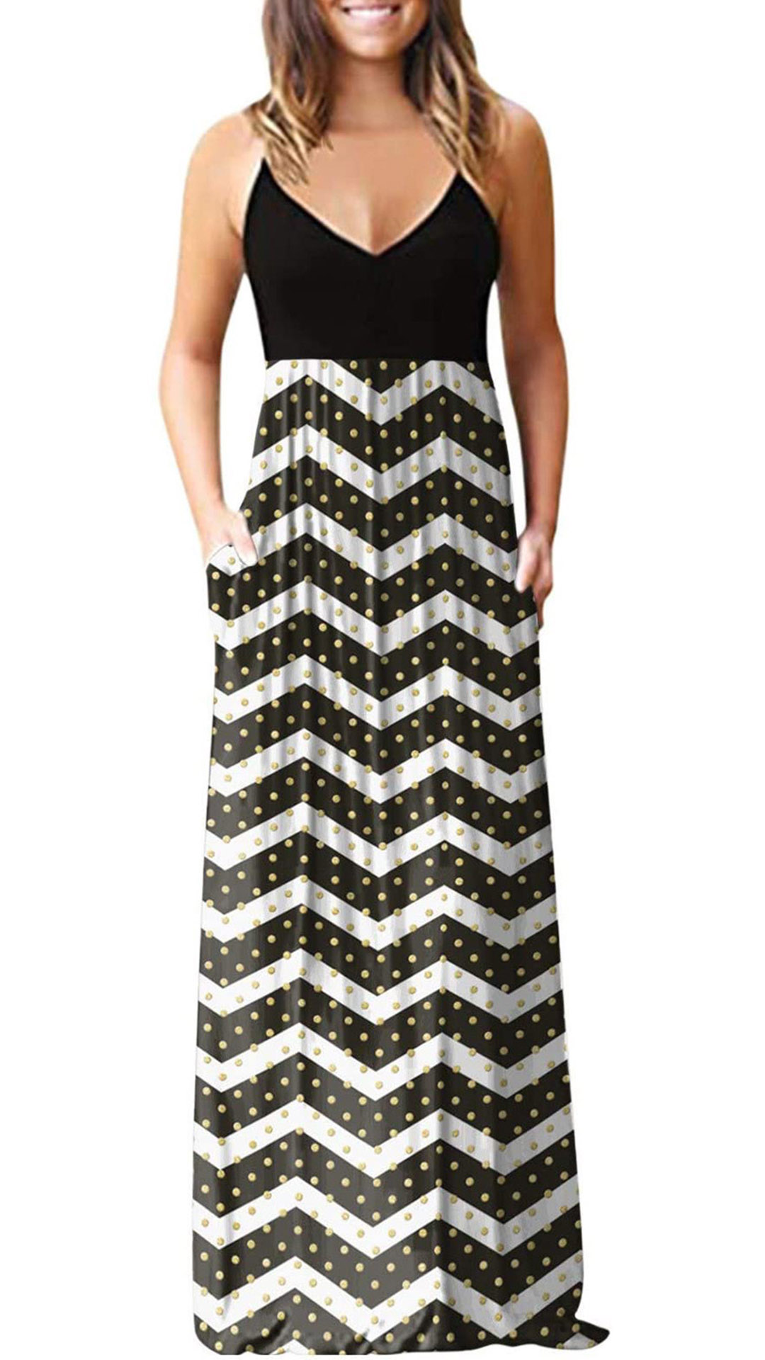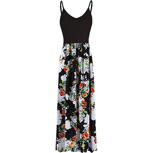 This stunning dress is made from a lightweight, flowy fabric that drapes beautifully on the body. It features a gorgeous floral print, spaghetti straps, and a slant pockets for a touch of casual.