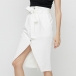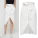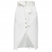 Fashion Frayed Buttoned Slit White Denim Skirt with Belt
