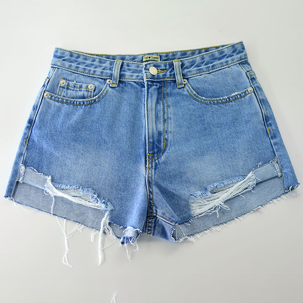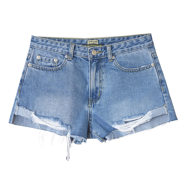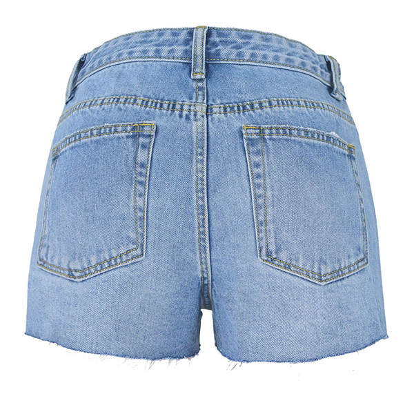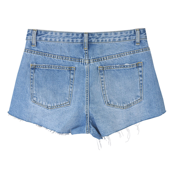 Fashion Frayed Hemline Old-washed Denim Shorts