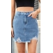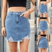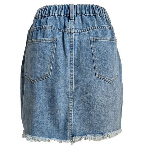 Fashion Frayed Hemline Old-washed Denim Skirt