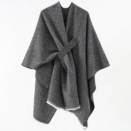 Fashion Frayed Hemline Slant Knot Cape-Poncho for Women