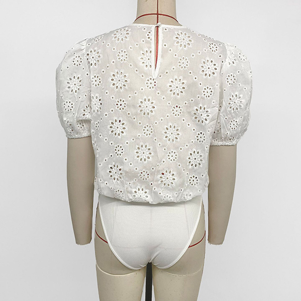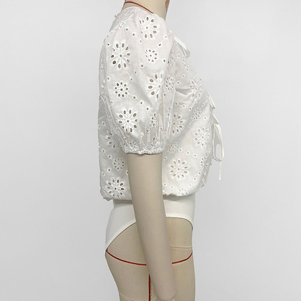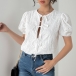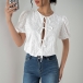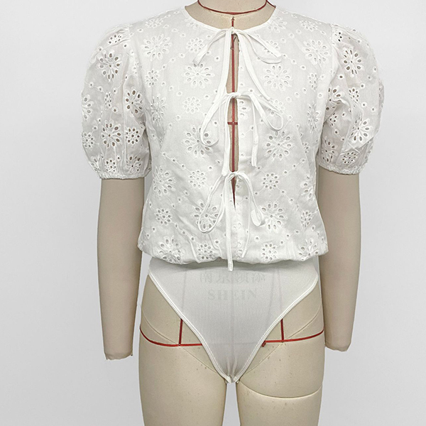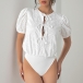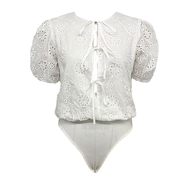 Fashion Front Bowknot Crew Neck Short Sleeve Lace Bodysuit