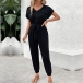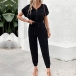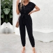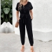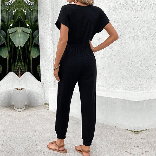 Fashion Front Button Crew Neck Short Sleeve Self-tie Jumpsuit