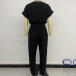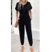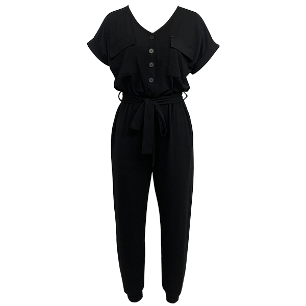 This fashionable jumpsuit features a front button design, crew neckline, short sleeves, and a self-tie waist detail, creating a chic and trendy look. Hope you like it.