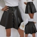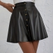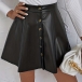 Fashion Front Button High-rise Artificial Leather PU Skirt