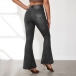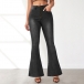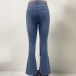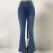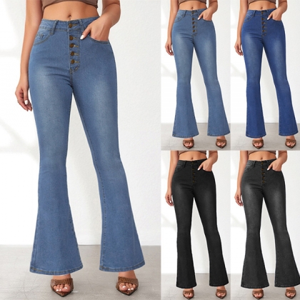 Fashion Front Button High-rise Flare Old-washed Denim Jeans