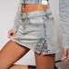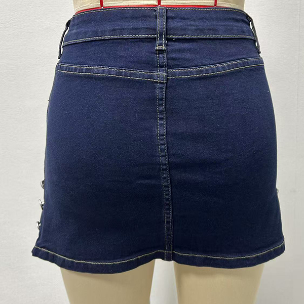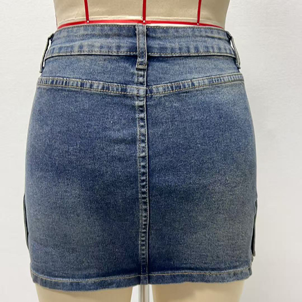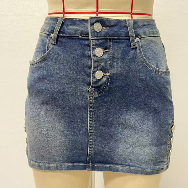Fashion Front Button Low-rise Old-washed Denim Mini Skirt