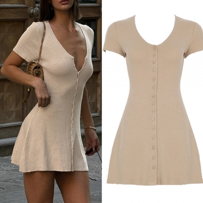 Discover the beauty of simplicity in this versatile mini dress that proves classic never goes out of style. A full front button closure offers easy wear and styling flexibility—button it all the way up for a polished look or leave a few undone for relaxed charm. Wanna have a try?