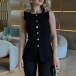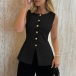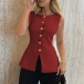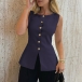 Ce cardigan élégant est le complément parfait à votre garde-robe pour les jours où vous avez besoin d'une couche légère ajoutant de la sophistication à votre tenue. Sa conception sans manches le rend polyvalent pour toutes les saisons, tandis que la fermeture à boutons sur le devant apporte une touche d'élégance et de structure. Ce cardigan est idéal pour être superposé sur une variété de hauts, des t-shirts basiques aux chemisiers. Vous voulez essayer ?
