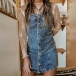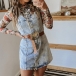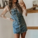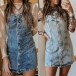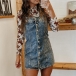 Fashion Front Button Square Neck Old-washed Denim Suspender Dress