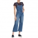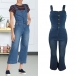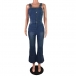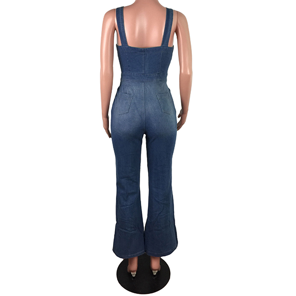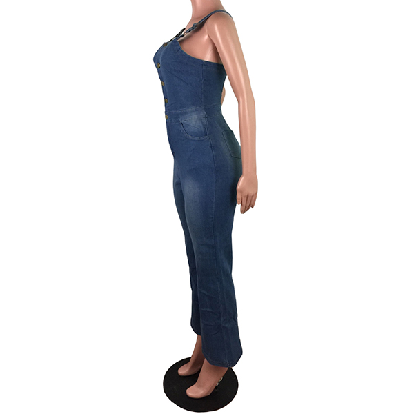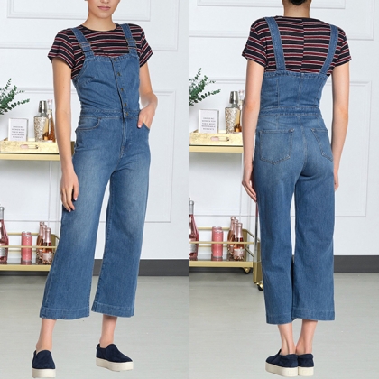 Fashion Front Button Square Neck Straight-cut Old-washed Denim Jumpsuit