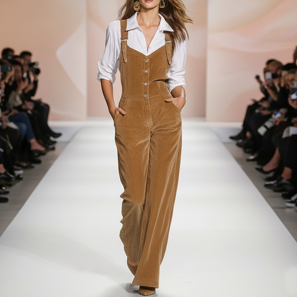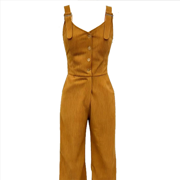 Fashion Front Button Straight Cuts Corduroy Adjustable Shoulder Strap Suspender Jumpsuit
