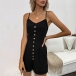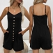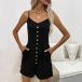 Fashion Front Button V-neck Side Pockets Romper