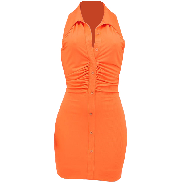 Fashion Front Button V-neck Stand Collar Sleeveless Bodycon Dress