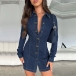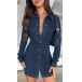 Fashion Front Buttoned Stand Collar Long Sleeve Denim Shirt Dress