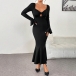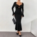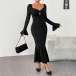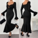 Fashion Front Cutout Long Sleeve Ruffle Bodycon Maxi Dress