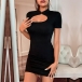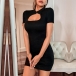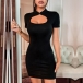 Fashion Front Cutout Short Sleeve Bodycon Dress