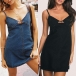 Fashion Front Cutout V-neck Cami Bodycon Denim Dress