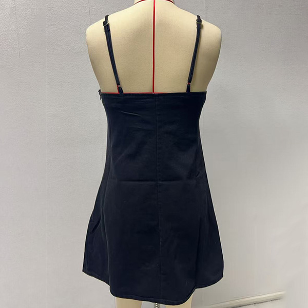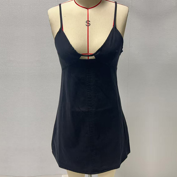 This is a sleek and trendy denim dress. The front cutout design adds a touch of boldness and allure to the dress, creating a statement-making look. Crafted with a bodycon silhouette and denim fabric, this dress provides a figure-hugging and fashion-forward aesthetic that is ideal for making a bold fashion statement. Hope you like it.