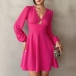 Fashion Front Cutout V-neck Long Sleeve A-lined Dress