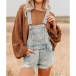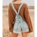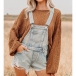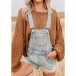Fashion Front Patch Pockets Frayed Hemline Adjustable Shoulder Strap Old-washed Suspender Romper