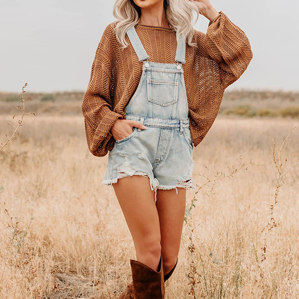 Embrace a trendy yet laid-back vibe with this Suspender Romper. This stylish romper features practical front patch pockets and an old-washed denim finish for a relaxed, vintage look. The frayed hemline adds a touch of edginess, while adjustable shoulder straps allow for a perfect fit. Ideal for casual outings or summer adventures, pair it with a fitted tee or tank top for a chic and effortless ensemble!