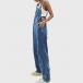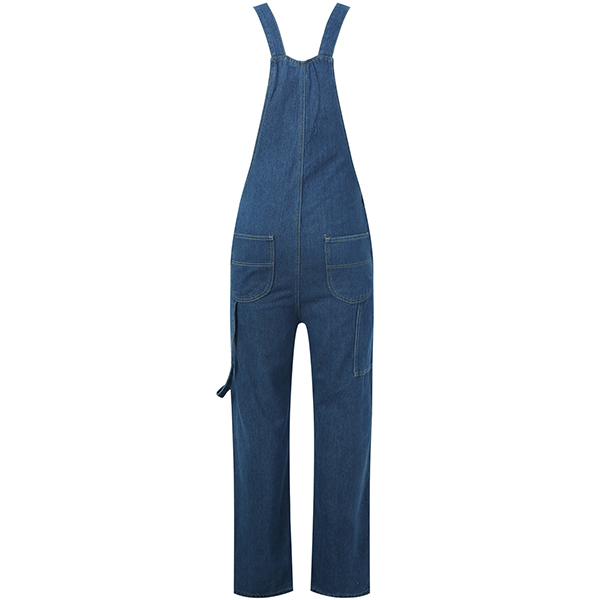 Fashion Front Patch Pockets Straight-cut Unisex Old-washed Denim Suspender Jumpsuit