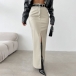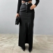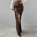 Fashion Front Slit Artificial Leather PU Maxi Skirt