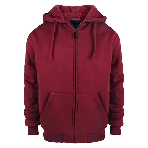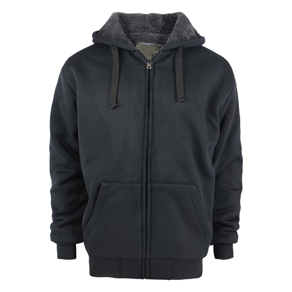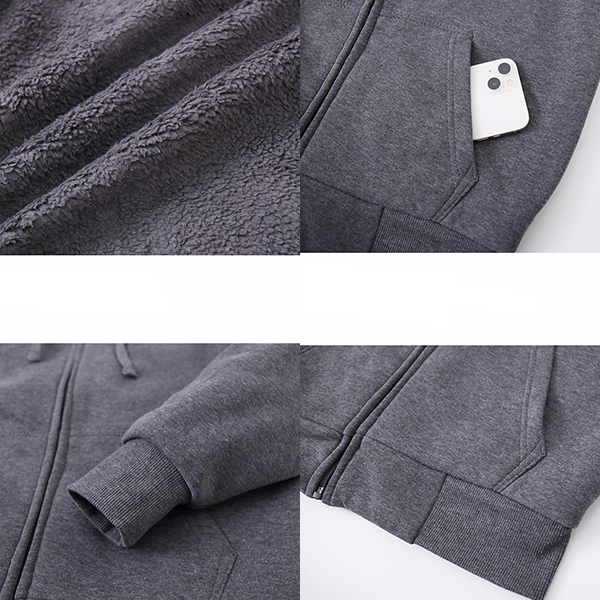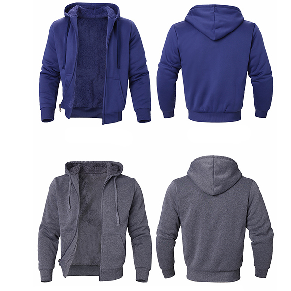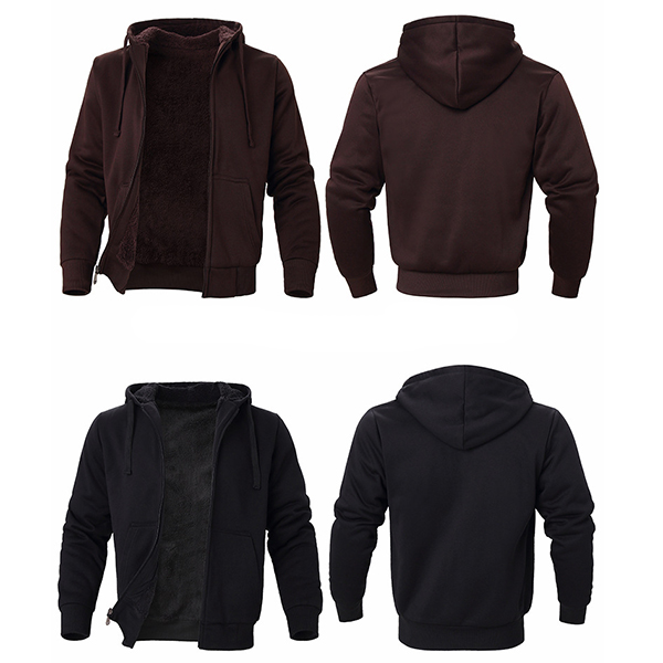 Fashion Front Zipper Drawstring Hooded Warm Plush Lined Sweatshirt Jacket for Men