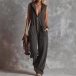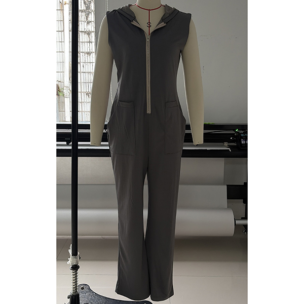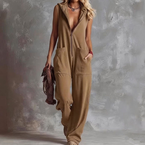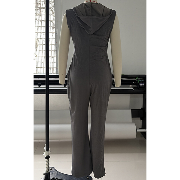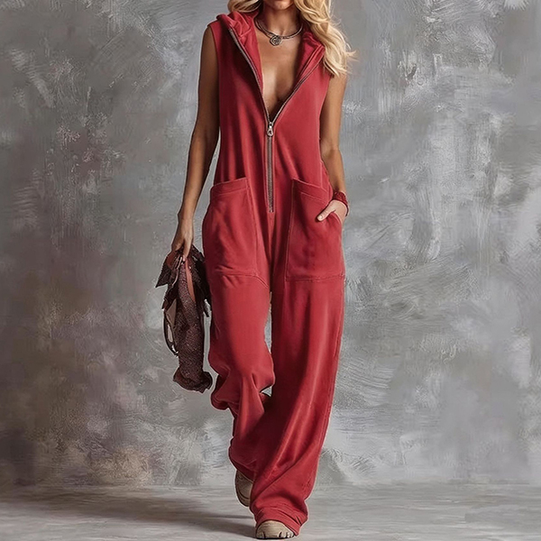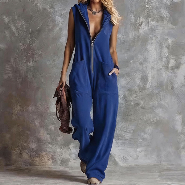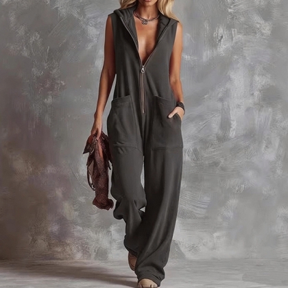 Fashion Front Zipper Hooded Sleeveless Wide-leg Jumpsuit