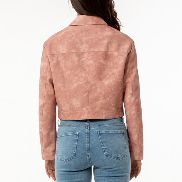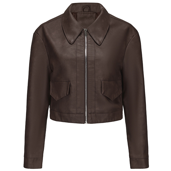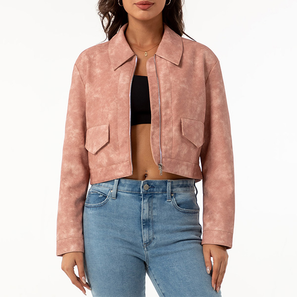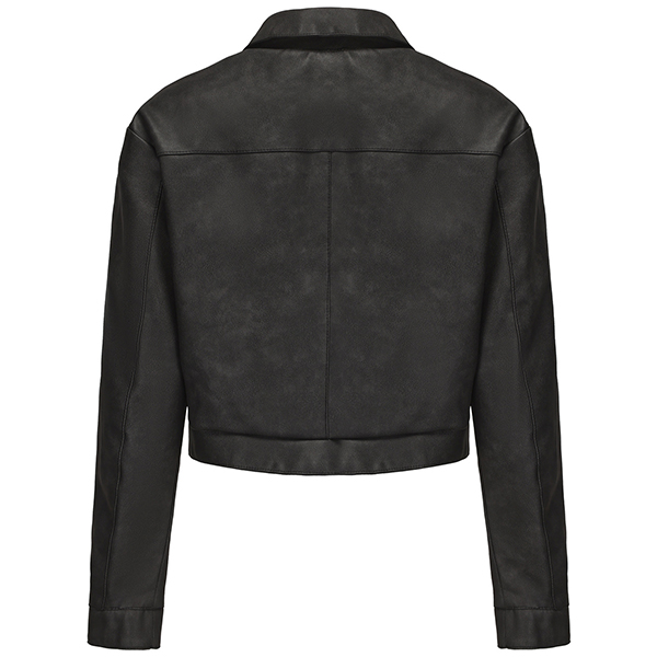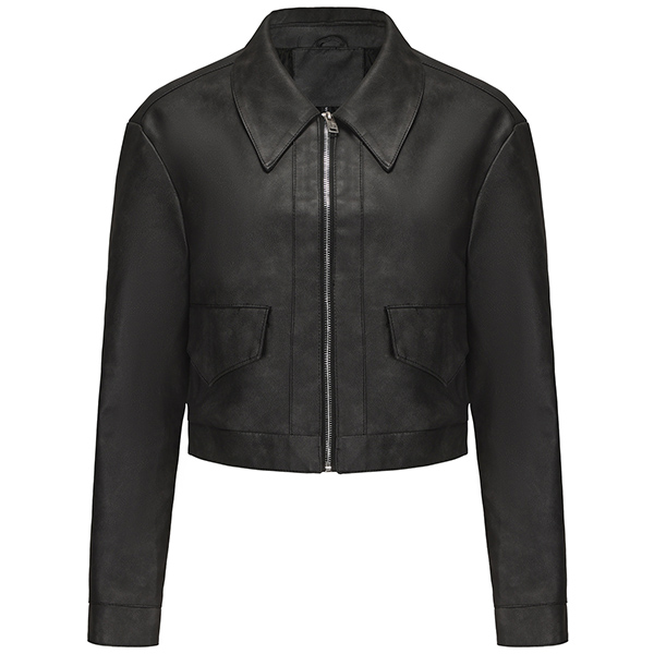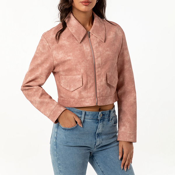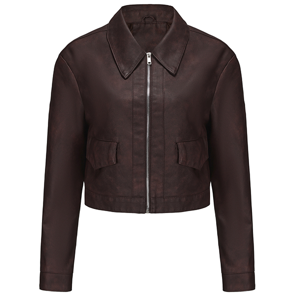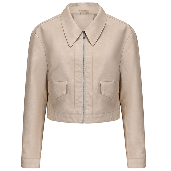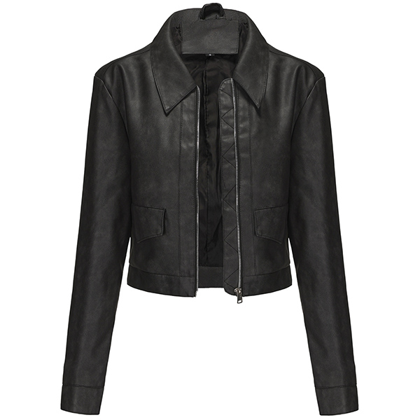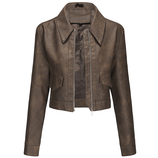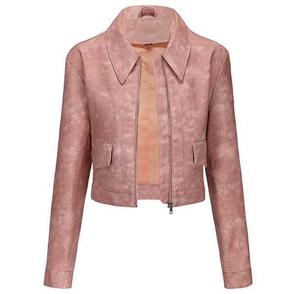 Fashion Front Zipper Long Sleeve Artificial Leather PU Crop Jacket
